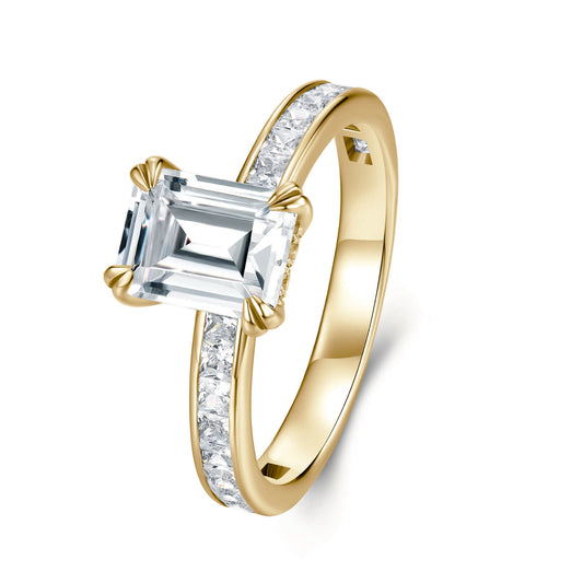 Solitaire Emerald Lab Diamond Ring in 14K Yellow Gold 4 Prong Setting