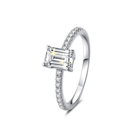 Solitaire Emerald Lab Diamond Ring in 14K White Gold 4 Prong Setting