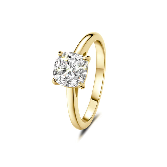 Solitaire Cushion Lab Diamond Ring in 18K Yellow Gold 4 Prong Setting
