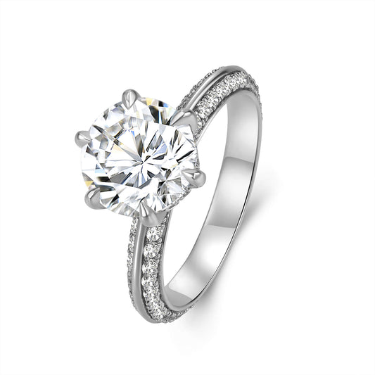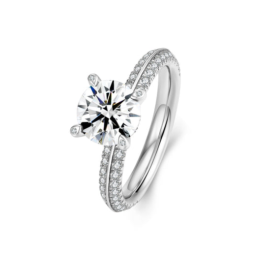 Round Solitaire Lab Diamond Ring in Platinum with Pave Band