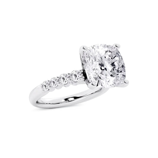 Solitaire Cushion Lab Diamond Ring in 18K White Gold 4 Prong Setting
