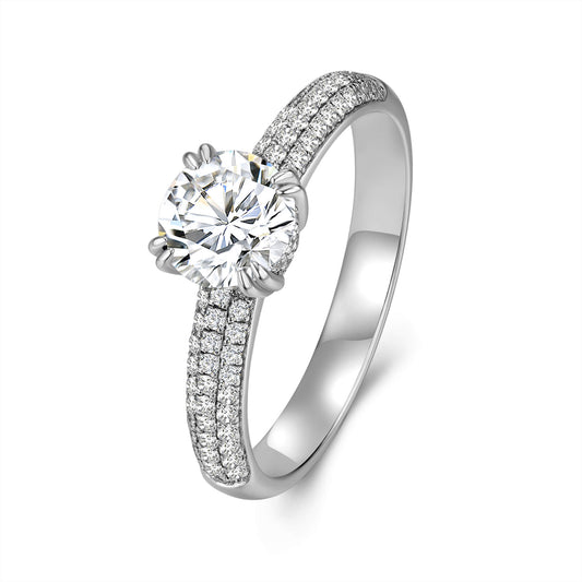 Solitaire Round Lab Diamond Ring with Pave Band in 18K White Gold 6 Prong