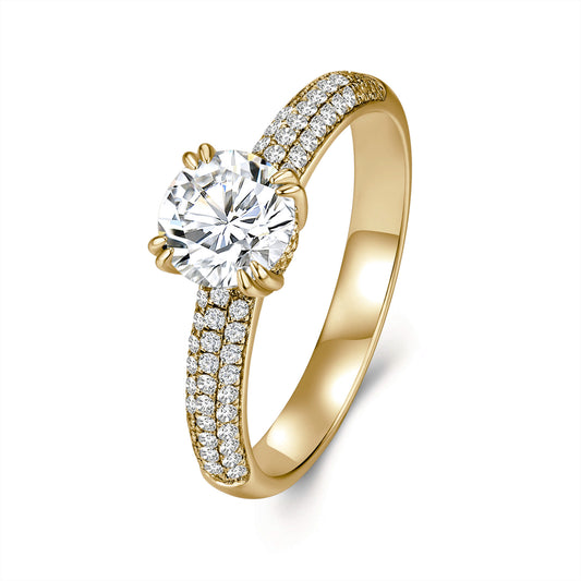 Solitaire Round Lab Diamond Ring with Pave Band in 18K Yellow Gold 6 Prong