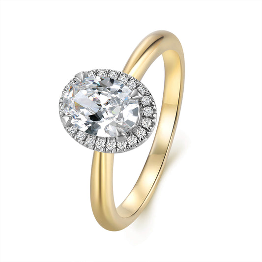 Halo Oval Lab Diamond Ring 18K Yellow Gold
