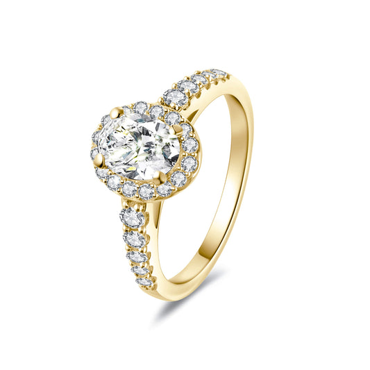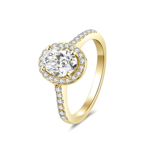Halo Pave Oval Lab Diamond Ring in 18K Yellow Gold