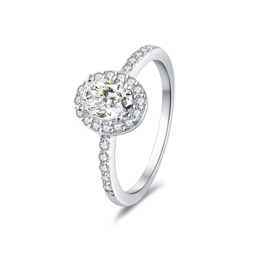 Halo Pave Oval Lab Diamond Ring in 18K White Gold