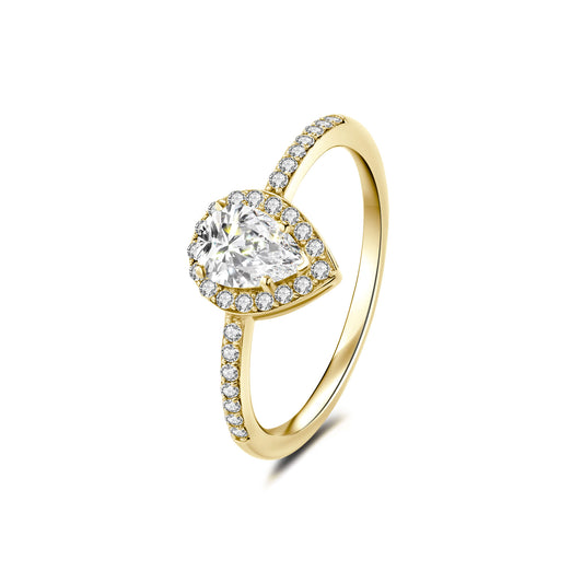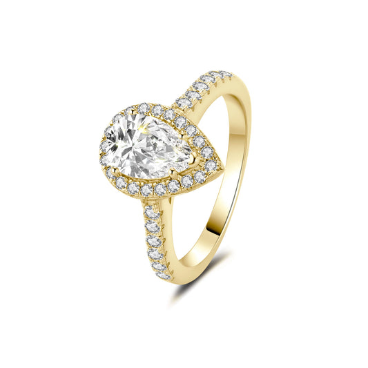 Halo Pear Lab Diamond Ring with Pave 18K Yellow Gold