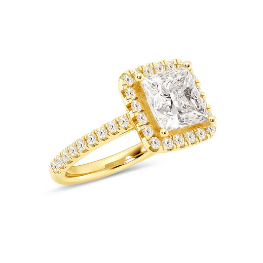 Halo Radiant Lab Diamond Ring in 18K Yellow Gold 4 Prong Setting