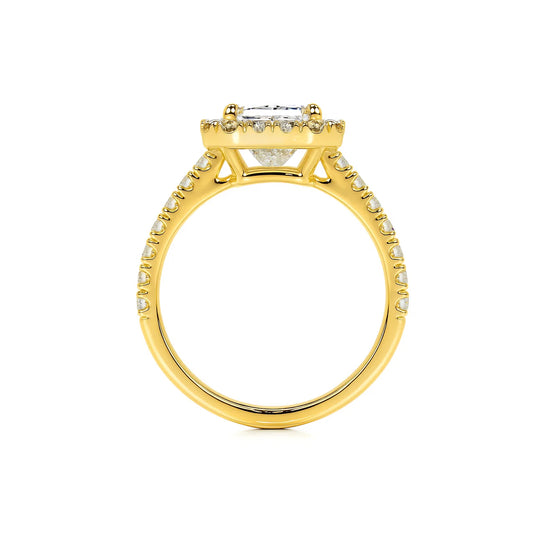Halo Radiant Lab Diamond Ring in 14K Yellow Gold 4 Prong Setting