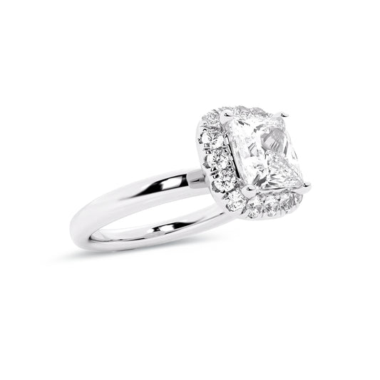 Halo Radiant Lab Diamond Ring in 18K White Gold