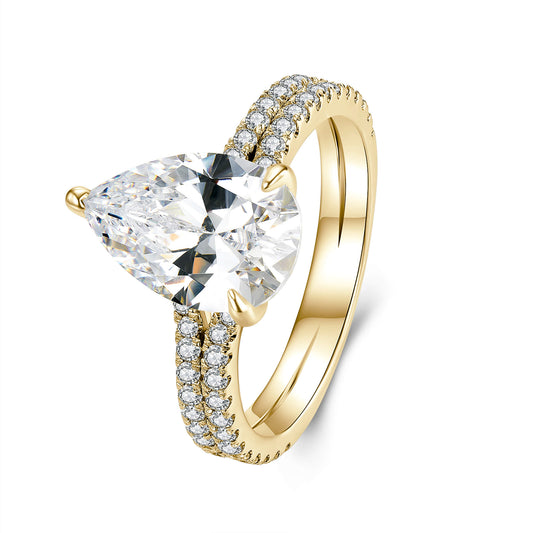Hidden Halo Pear Lab Diamond Ring with Pave 14K Yellow Gold
