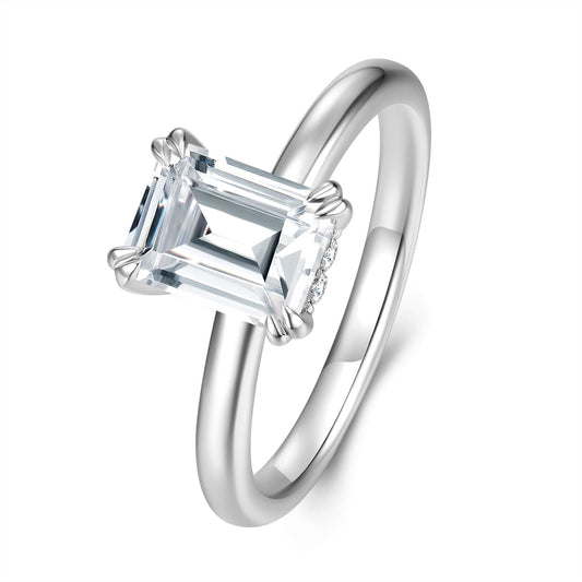 Hidden Halo Radiant Lab Diamond Ring in 18K White Gold