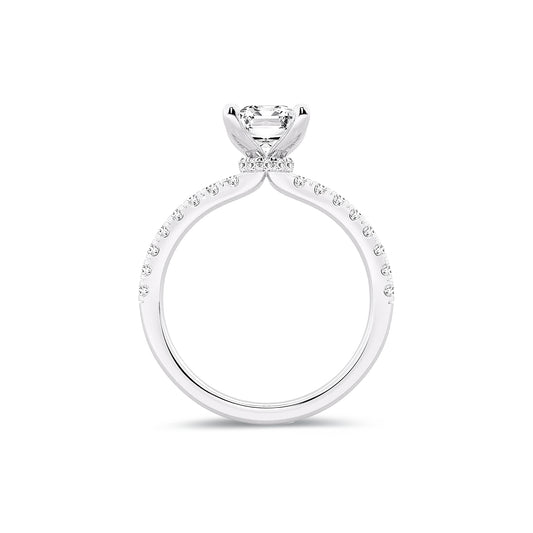 Hidden Halo Cushion Lab Diamond Ring in 18K White Gold 4 Prong Setting