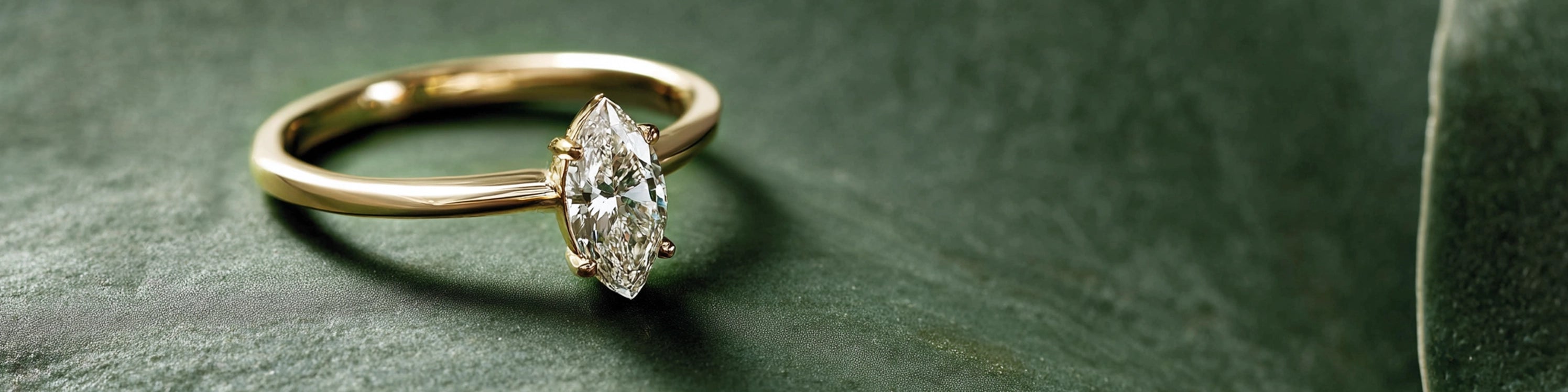 Solitaire Marquise Lab Diamond Ring in 14K Yellow Gold