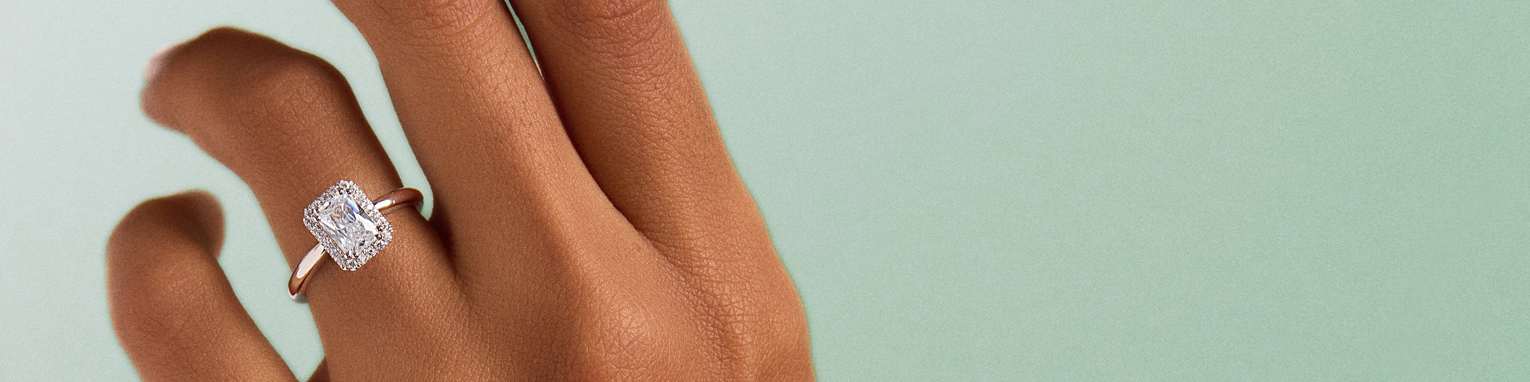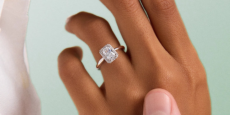 Hidden Halo Radiant Lab Diamond Ring in 14K White Gold
